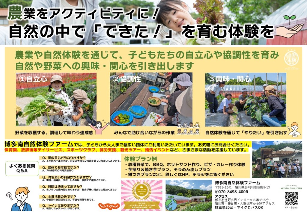 農業をアクティビティに。年間通して旬の野菜とさまざまな食育プランをご用意しております。