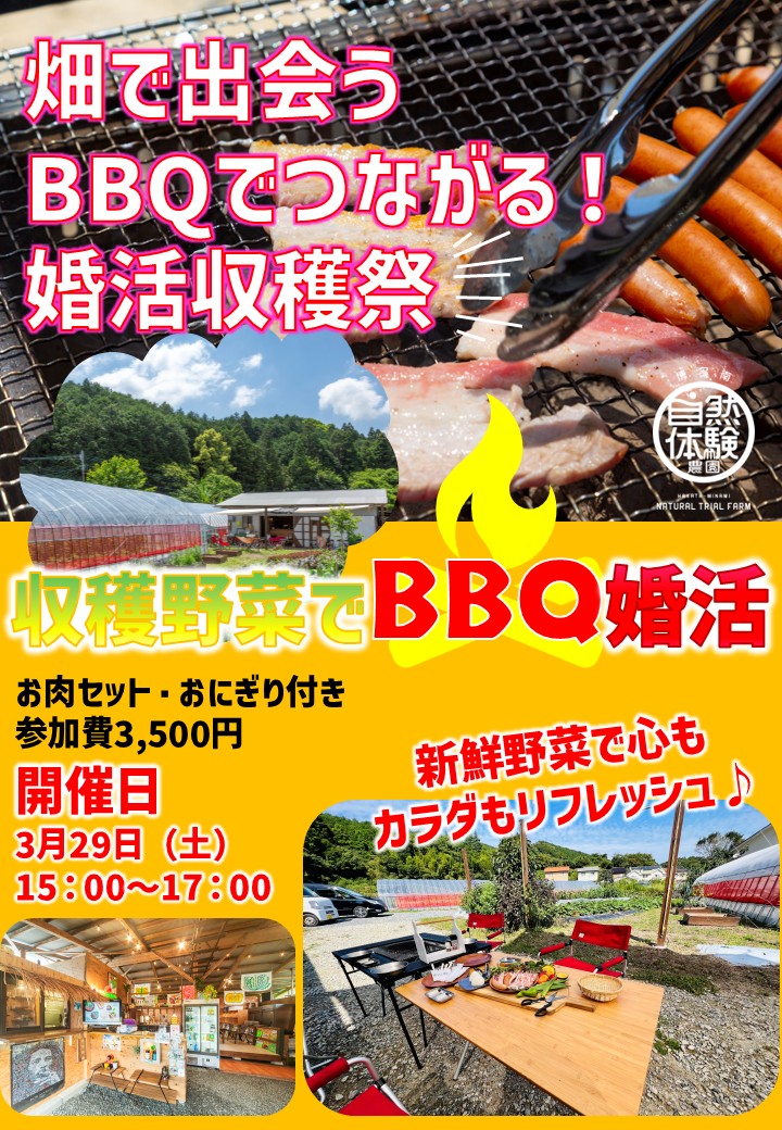 一緒に野菜収穫を楽しみ、採れたて新鮮野菜と地元精肉卸店厳選のお肉でBBQ婚活!