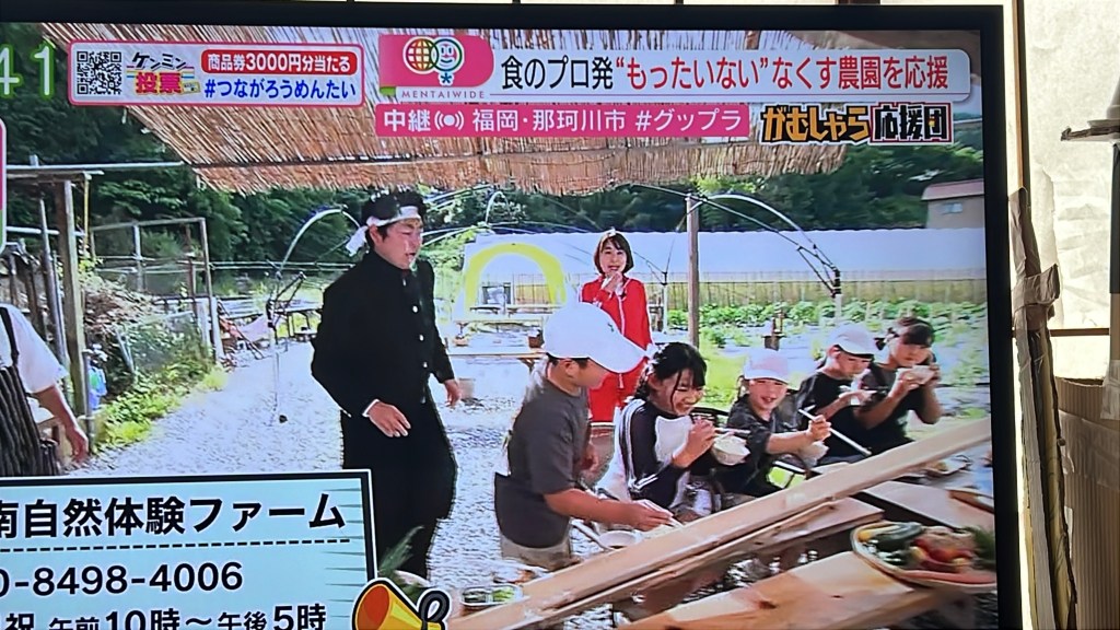 押忍!梅雨入り直前の6/5(木)FBSめんたいワイドの生中継で福岡天神から車で約30分、福岡県那珂川市・博多南自然体験ファームが紹介されました!