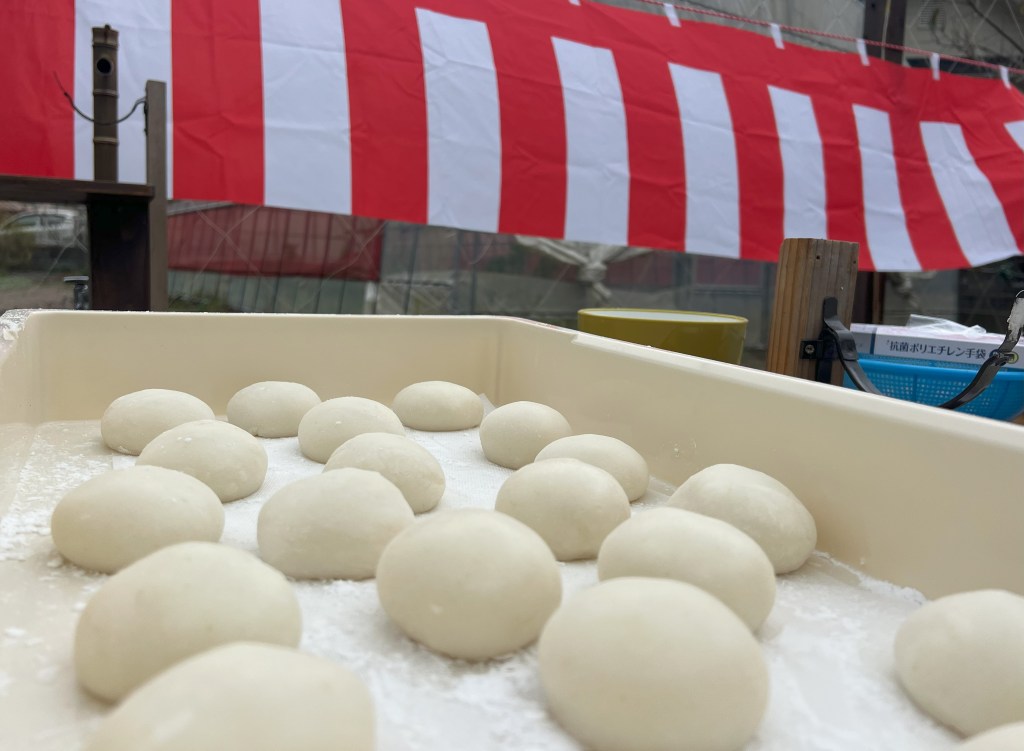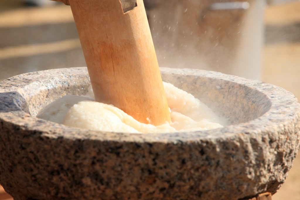 炭火で焼いたり、きな粉や醤油もご準備しておりますので、お餅もその場で召し上がっていただけます。余ったお餅は持ち帰りできます!